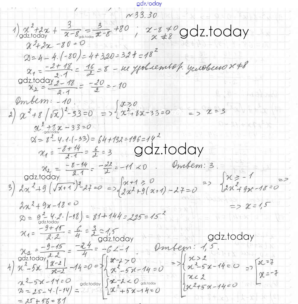 Ответы к §33. Формула корней квадратного уравнения Решение к главе 6. Квадратные уравнения 30 Учебнику по Алгебре для 8 класса Мерзляк, Поляков Углубленный уровень Вентана-граф Алгоритм успеха 2020