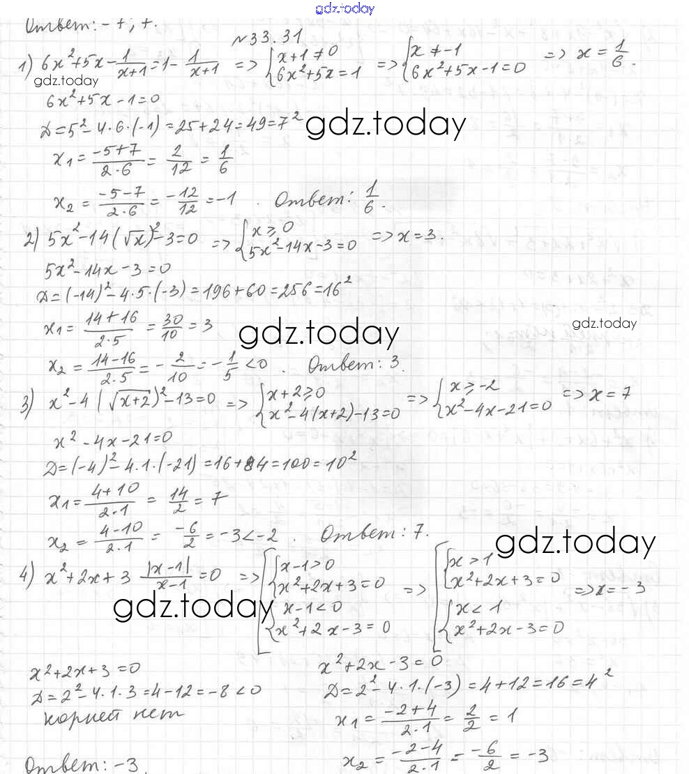 Ответы к §33. Формула корней квадратного уравнения Решение к главе 6. Квадратные уравнения 31 Учебнику по Алгебре для 8 класса Мерзляк, Поляков Углубленный уровень Вентана-граф Алгоритм успеха 2020