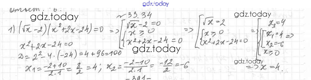 Ответы к §33. Формула корней квадратного уравнения Решение к главе 6. Квадратные уравнения 34 Учебнику по Алгебре для 8 класса Мерзляк, Поляков Углубленный уровень Вентана-граф Алгоритм успеха 2020