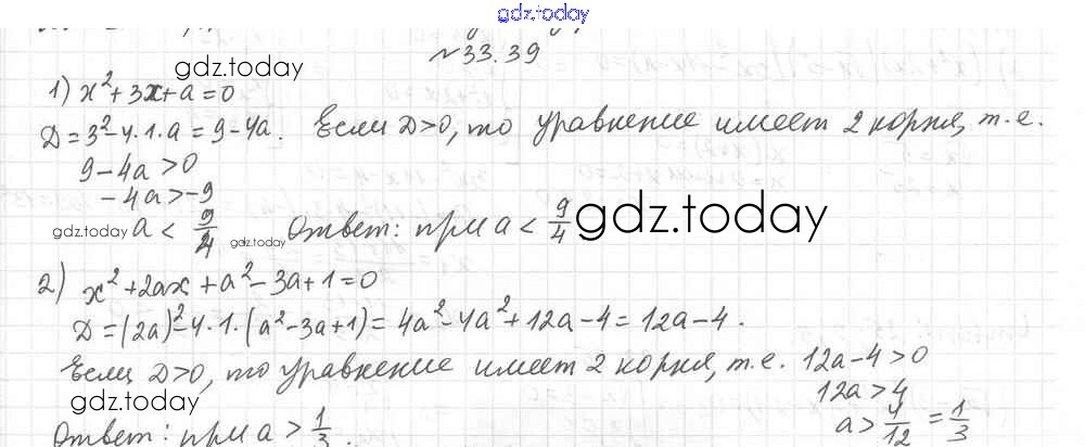 На страницах сайта gdz.today вы найдете учебный и вспомогательный материал, направленный на улучшения знаний школьной программы. ГДЗ - онлайн мир знаний §33. Формула корней квадратного уравнения Решение к главе 6. Квадратные уравнения 39 Учебнику по Алгебре для 8 класса Мерзляк, Поляков Углубленный уровень Вентана-граф Алгоритм успеха 2020