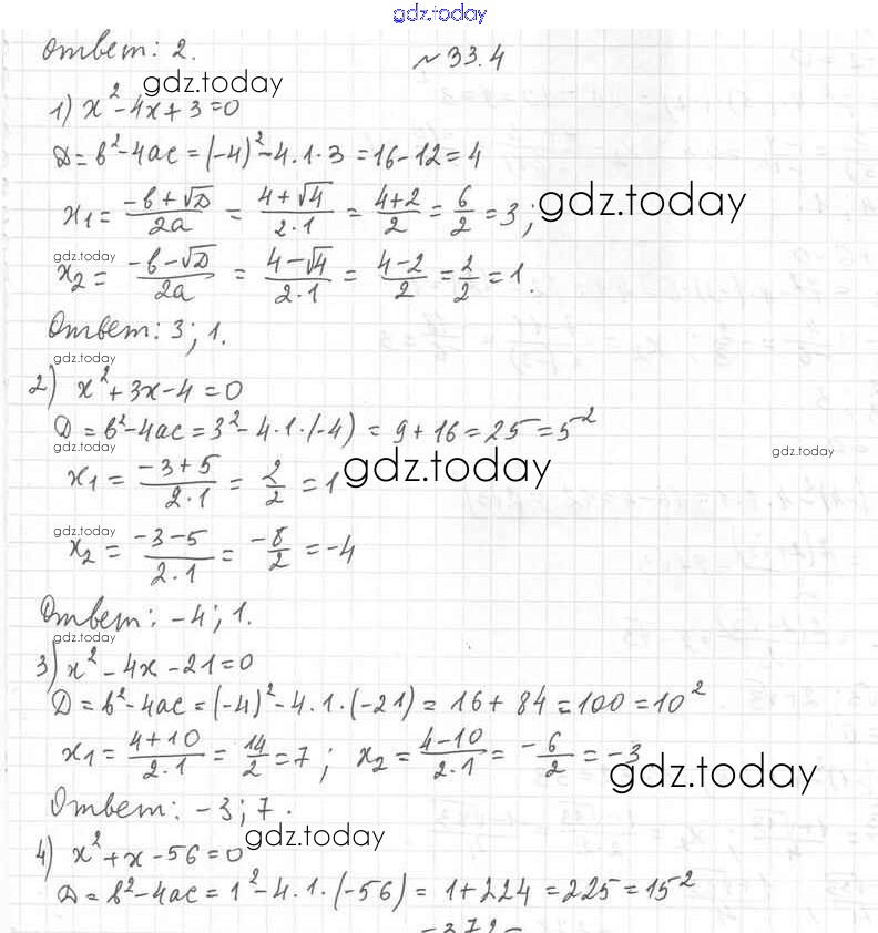 Ответы к §33. Формула корней квадратного уравнения Решение к главе 6. Квадратные уравнения 4 Учебнику по Алгебре для 8 класса Мерзляк, Поляков Углубленный уровень Вентана-граф Алгоритм успеха 2020
