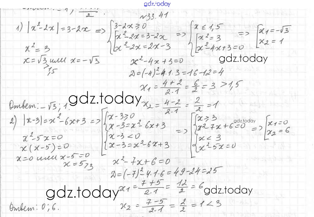 На страницах сайта gdz.today вы найдете учебный и вспомогательный материал, направленный на улучшения знаний школьной программы. ГДЗ - онлайн мир знаний §33. Формула корней квадратного уравнения Решение к главе 6. Квадратные уравнения 41 Учебнику по Алгебре для 8 класса Мерзляк, Поляков Углубленный уровень Вентана-граф Алгоритм успеха 2020