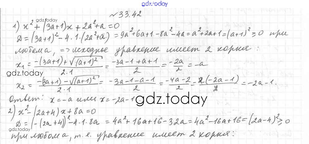 Ответы к §33. Формула корней квадратного уравнения Решение к главе 6. Квадратные уравнения 42 Учебнику по Алгебре для 8 класса Мерзляк, Поляков Углубленный уровень Вентана-граф Алгоритм успеха 2020