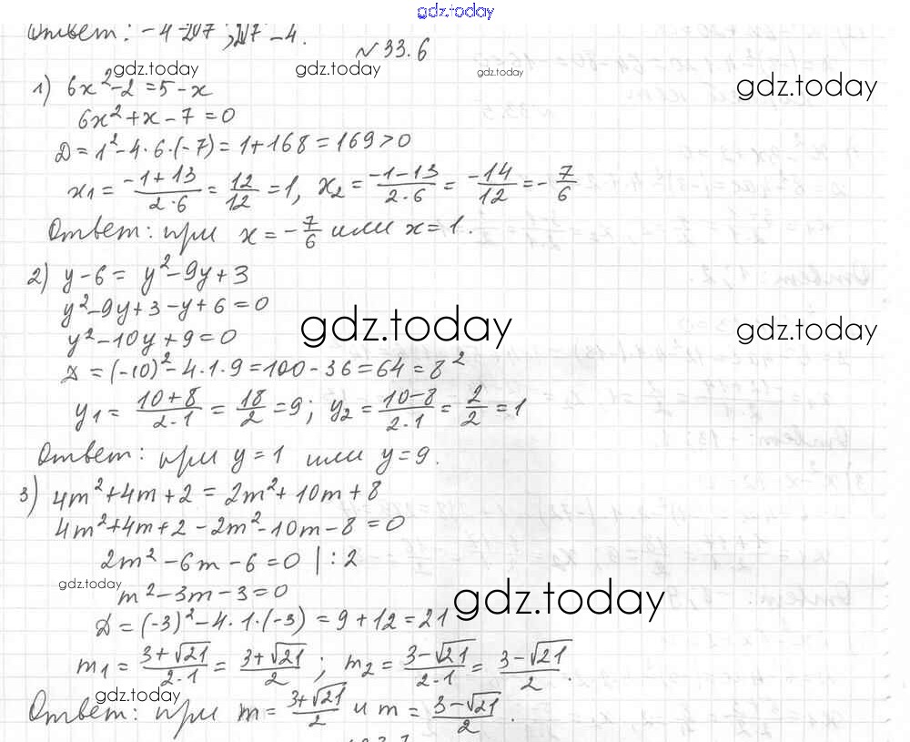 Ответы к §33. Формула корней квадратного уравнения Решение к главе 6. Квадратные уравнения 6 Учебнику по Алгебре для 8 класса Мерзляк, Поляков Углубленный уровень Вентана-граф Алгоритм успеха 2020