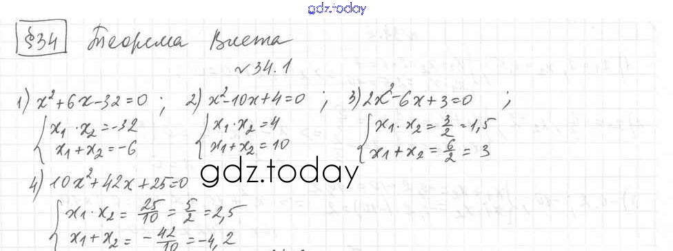 Ответы к §34. Теорема Виета Решение к главе 6. Квадратные уравнения 1 Учебнику по Алгебре для 8 класса Мерзляк, Поляков Углубленный уровень Вентана-граф Алгоритм успеха 2020