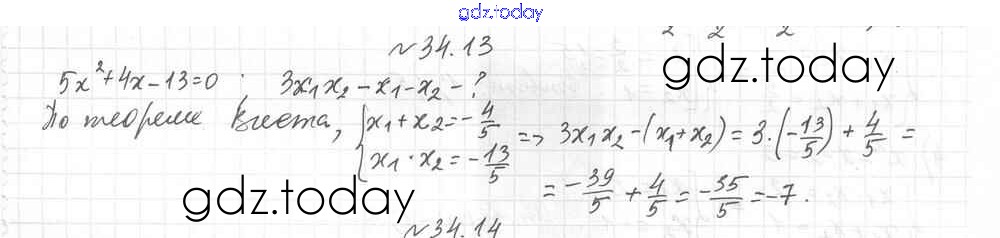 Ответы к §34. Теорема Виета Решение к главе 6. Квадратные уравнения 13 Учебнику по Алгебре для 8 класса Мерзляк, Поляков Углубленный уровень Вентана-граф Алгоритм успеха 2020