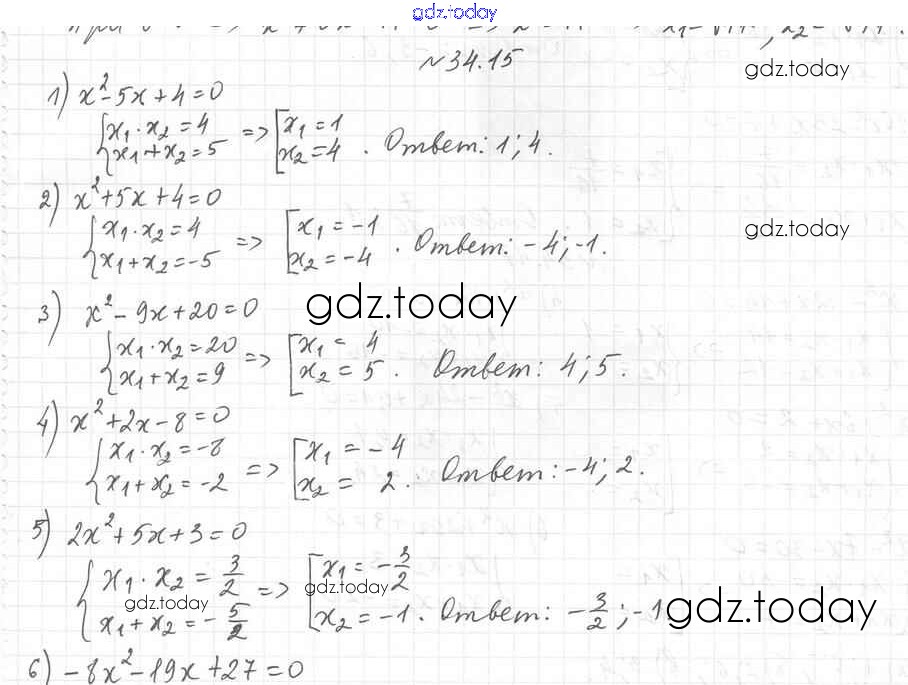 Ответы к §34. Теорема Виета Решение к главе 6. Квадратные уравнения 15 Учебнику по Алгебре для 8 класса Мерзляк, Поляков Углубленный уровень Вентана-граф Алгоритм успеха 2020