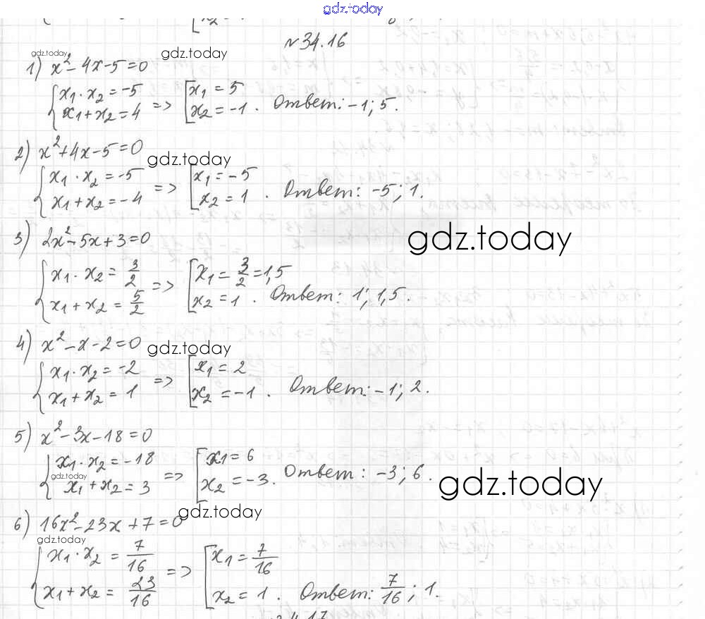 На страницах сайта gdz.today вы найдете учебный и вспомогательный материал, направленный на улучшения знаний школьной программы. ГДЗ - онлайн мир знаний §34. Теорема Виета Решение к главе 6. Квадратные уравнения 16 Учебнику по Алгебре для 8 класса Мерзляк, Поляков Углубленный уровень Вентана-граф Алгоритм успеха 2020