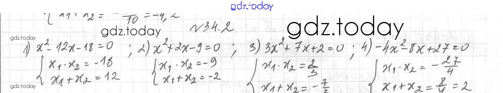 Ответы к §34. Теорема Виета Решение к главе 6. Квадратные уравнения 2 Учебнику по Алгебре для 8 класса Мерзляк, Поляков Углубленный уровень Вентана-граф Алгоритм успеха 2020