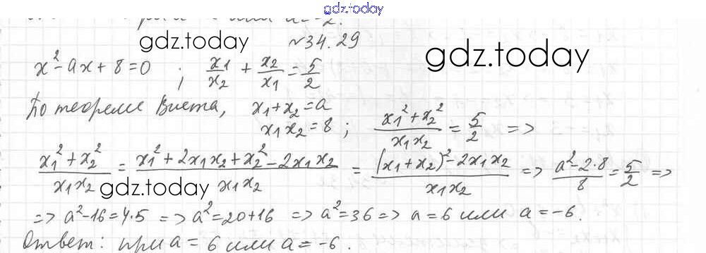 Ответы к §34. Теорема Виета Решение к главе 6. Квадратные уравнения 29 Учебнику по Алгебре для 8 класса Мерзляк, Поляков Углубленный уровень Вентана-граф Алгоритм успеха 2020