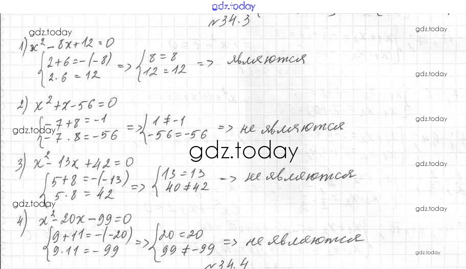 На страницах сайта gdz.today вы найдете учебный и вспомогательный материал, направленный на улучшения знаний школьной программы. ГДЗ - онлайн мир знаний §34. Теорема Виета Решение к главе 6. Квадратные уравнения 3 Учебнику по Алгебре для 8 класса Мерзляк, Поляков Углубленный уровень Вентана-граф Алгоритм успеха 2020