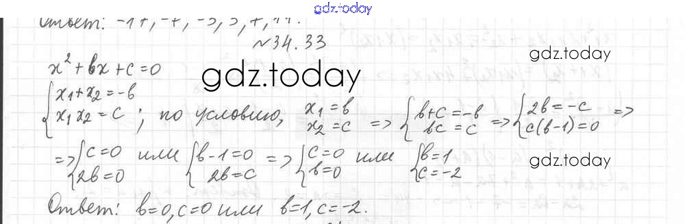 На страницах сайта gdz.today вы найдете учебный и вспомогательный материал, направленный на улучшения знаний школьной программы. ГДЗ - онлайн мир знаний §34. Теорема Виета Решение к главе 6. Квадратные уравнения 33 Учебнику по Алгебре для 8 класса Мерзляк, Поляков Углубленный уровень Вентана-граф Алгоритм успеха 2020