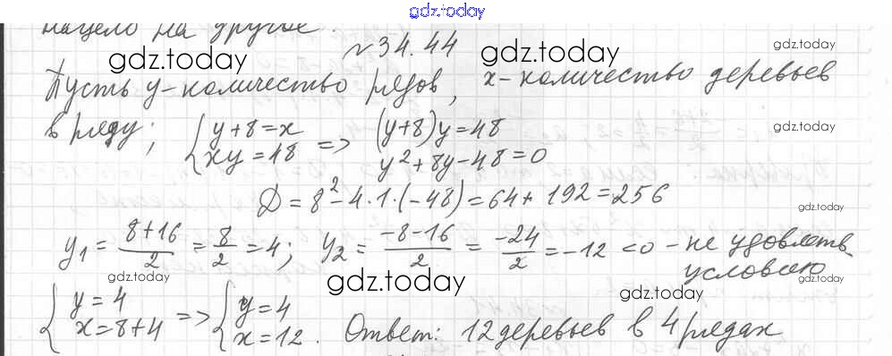 На страницах сайта gdz.today вы найдете учебный и вспомогательный материал, направленный на улучшения знаний школьной программы. ГДЗ - онлайн мир знаний §34. Теорема Виета Решение к главе 6. Квадратные уравнения 44 Учебнику по Алгебре для 8 класса Мерзляк, Поляков Углубленный уровень Вентана-граф Алгоритм успеха 2020