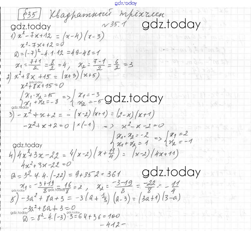 Ответы к §35. Квадратный трехчлен Решение к главе 6. Квадратные уравнения 1 Учебнику по Алгебре для 8 класса Мерзляк, Поляков Углубленный уровень Вентана-граф Алгоритм успеха 2020