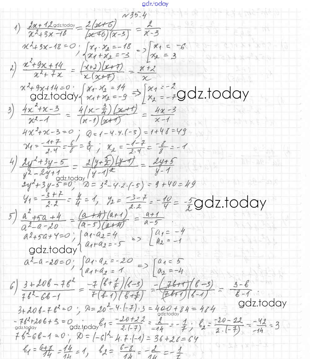 Ответы к §35. Квадратный трехчлен Решение к главе 6. Квадратные уравнения 4 Учебнику по Алгебре для 8 класса Мерзляк, Поляков Углубленный уровень Вентана-граф Алгоритм успеха 2020