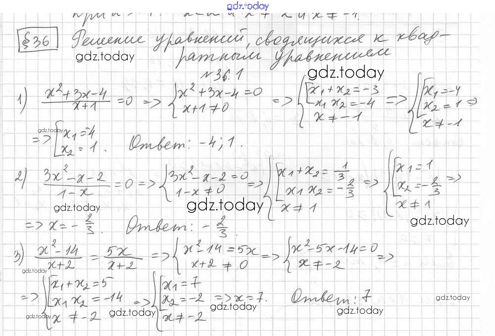 На страницах сайта gdz.today вы найдете учебный и вспомогательный материал, направленный на улучшения знаний школьной программы. ГДЗ - онлайн мир знаний §36. Решение уравнений, сводящихся к квадратным уравнениям Решение к главе 6. Квадратные уравнения 1 Учебнику по Алгебре для 8 класса Мерзляк, Поляков Углубленный уровень Вентана-граф Алгоритм успеха 2020