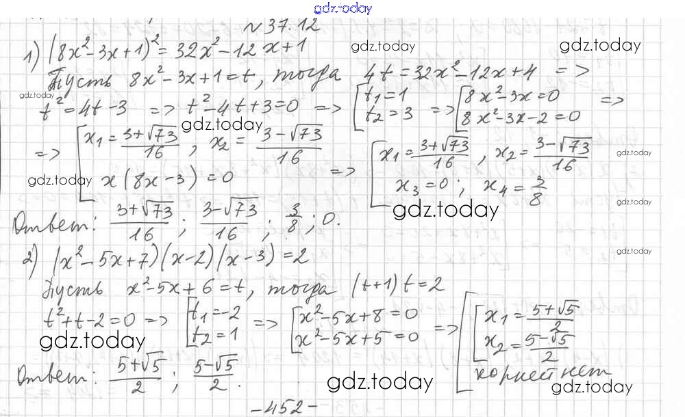 Ответы к §37. Решение уравнений методом замены переменной Решение к главе 6. Квадратные уравнения 12 Учебнику по Алгебре для 8 класса Мерзляк, Поляков Углубленный уровень Вентана-граф Алгоритм успеха 2020