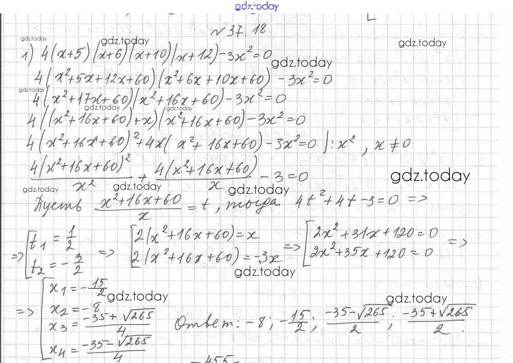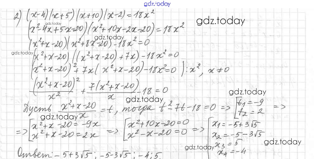 На страницах сайта gdz.today вы найдете учебный и вспомогательный материал, направленный на улучшения знаний школьной программы. ГДЗ - онлайн мир знаний §37. Решение уравнений методом замены переменной Решение к главе 6. Квадратные уравнения 18 Учебнику по Алгебре для 8 класса Мерзляк, Поляков Углубленный уровень Вентана-граф Алгоритм успеха 2020