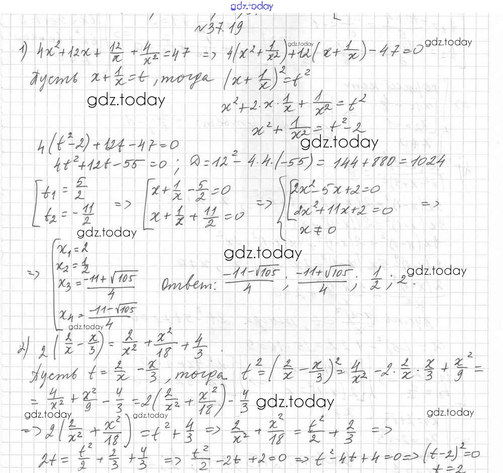 На страницах сайта gdz.today вы найдете учебный и вспомогательный материал, направленный на улучшения знаний школьной программы. ГДЗ - онлайн мир знаний §37. Решение уравнений методом замены переменной Решение к главе 6. Квадратные уравнения 19 Учебнику по Алгебре для 8 класса Мерзляк, Поляков Углубленный уровень Вентана-граф Алгоритм успеха 2020