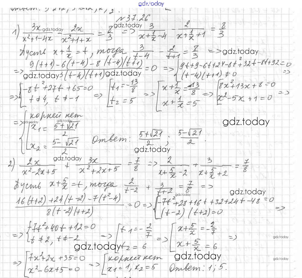 Ответы к §37. Решение уравнений методом замены переменной Решение к главе 6. Квадратные уравнения 26 Учебнику по Алгебре для 8 класса Мерзляк, Поляков Углубленный уровень Вентана-граф Алгоритм успеха 2020