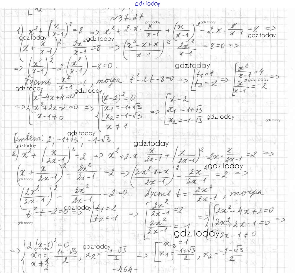 Ответы к §37. Решение уравнений методом замены переменной Решение к главе 6. Квадратные уравнения 27 Учебнику по Алгебре для 8 класса Мерзляк, Поляков Углубленный уровень Вентана-граф Алгоритм успеха 2020