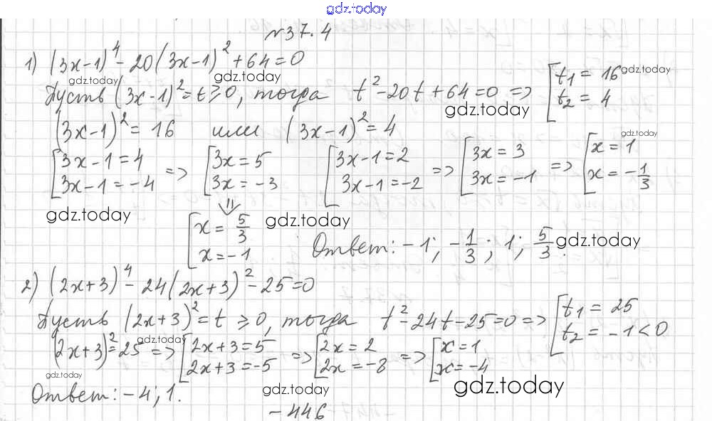 На страницах сайта gdz.today вы найдете учебный и вспомогательный материал, направленный на улучшения знаний школьной программы. ГДЗ - онлайн мир знаний §37. Решение уравнений методом замены переменной Решение к главе 6. Квадратные уравнения 4 Учебнику по Алгебре для 8 класса Мерзляк, Поляков Углубленный уровень Вентана-граф Алгоритм успеха 2020