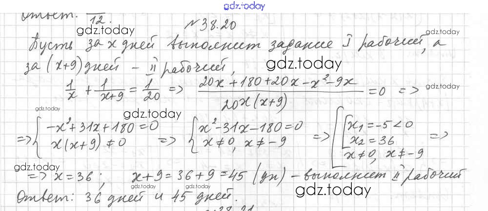 Ответы к §38. Рациональные уравнения как математические модели реальных ситуаций Решение к главе 6. Квадратные уравнения 20 Учебнику по Алгебре для 8 класса Мерзляк, Поляков Углубленный уровень Вентана-граф Алгоритм успеха 2020