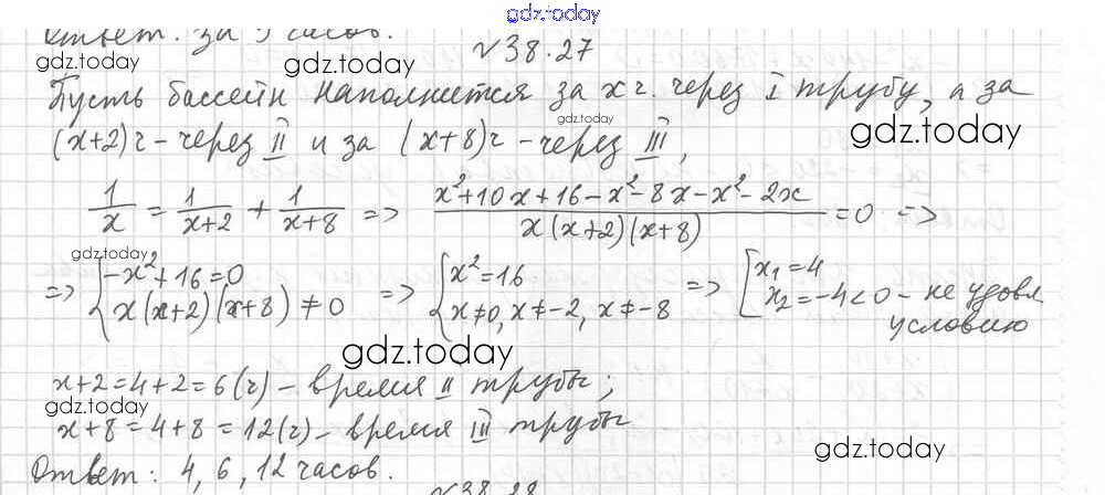 Ответы к §38. Рациональные уравнения как математические модели реальных ситуаций Решение к главе 6. Квадратные уравнения 27 Учебнику по Алгебре для 8 класса Мерзляк, Поляков Углубленный уровень Вентана-граф Алгоритм успеха 2020