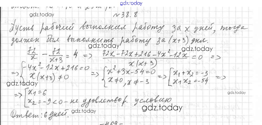 Ответы к §38. Рациональные уравнения как математические модели реальных ситуаций Решение к главе 6. Квадратные уравнения 8 Учебнику по Алгебре для 8 класса Мерзляк, Поляков Углубленный уровень Вентана-граф Алгоритм успеха 2020