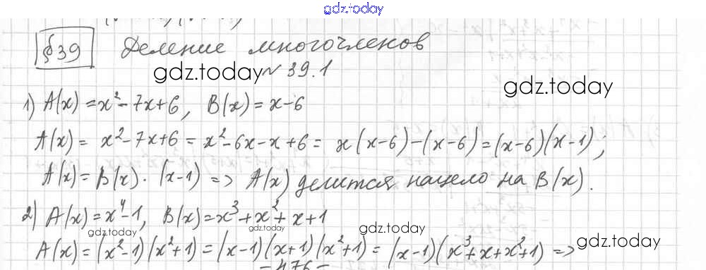 На страницах сайта gdz.today вы найдете учебный и вспомогательный материал, направленный на улучшения знаний школьной программы. ГДЗ - онлайн мир знаний §39. Деление многочленов Решение к главе 6. Квадратные уравнения 1 Учебнику по Алгебре для 8 класса Мерзляк, Поляков Углубленный уровень Вентана-граф Алгоритм успеха 2020