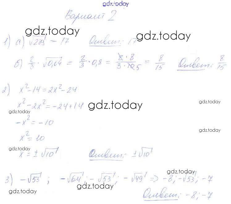 Ответы к СР-10. Варианты Решение к самостоятельным работам 2 Контрольным и самостоятельным работам по Алгебре для 8 класса Попов Экзамен УМК 2016