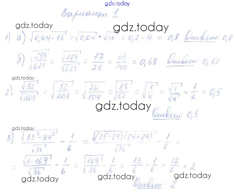 Ответы к СР-14. Варианты Решение к самостоятельным работам 1 Контрольным и самостоятельным работам по Алгебре для 8 класса Попов Экзамен УМК 2016