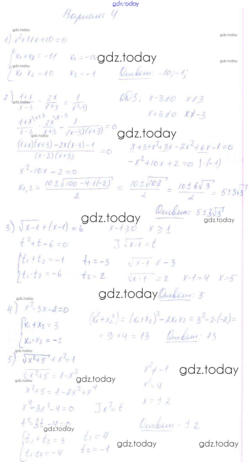 На страницах сайта gdz.today вы найдете учебный и вспомогательный материал, направленный на улучшения знаний школьной программы. ГДЗ - онлайн мир знаний КР-4. Варианты Решение к контрольным работам 4 Контрольным и самостоятельным работам по Алгебре для 8 класса Попов Экзамен УМК 2016