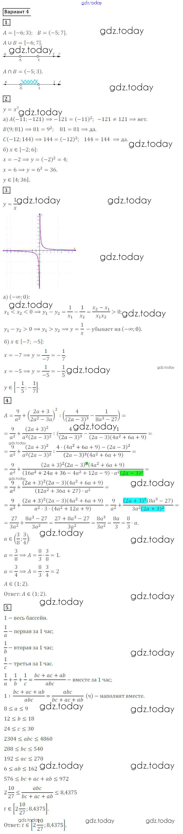 Ответы к КР №1 Решение к контрольным работам вариант 4 Дидактическим материалам по Алгебре для 8 класса Потапов, Шевкин Просвещение МГУ - школе 2017