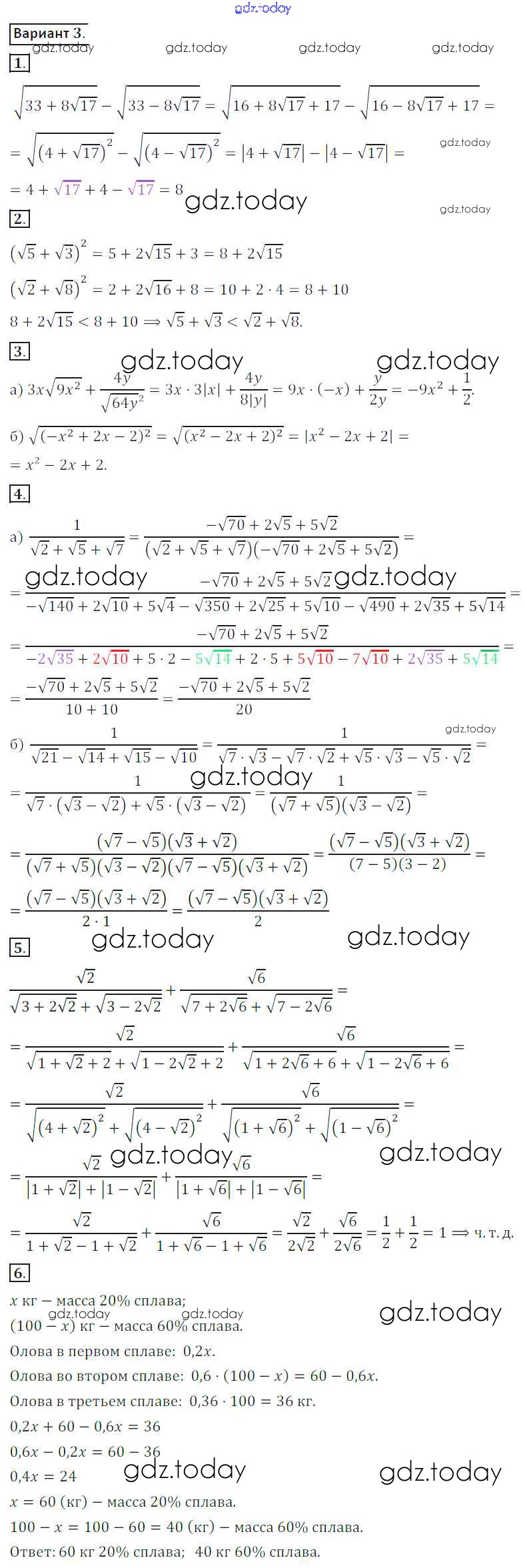 Ответы к КР №2 Решение к контрольным работам вариант 3 Дидактическим материалам по Алгебре для 8 класса Потапов, Шевкин Просвещение МГУ - школе 2017