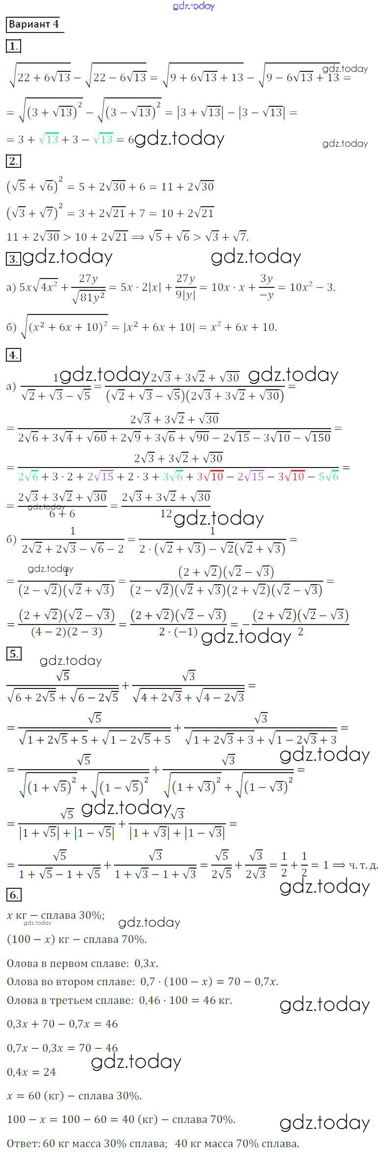 Ответы к КР №2 Решение к контрольным работам вариант 4 Дидактическим материалам по Алгебре для 8 класса Потапов, Шевкин Просвещение МГУ - школе 2017