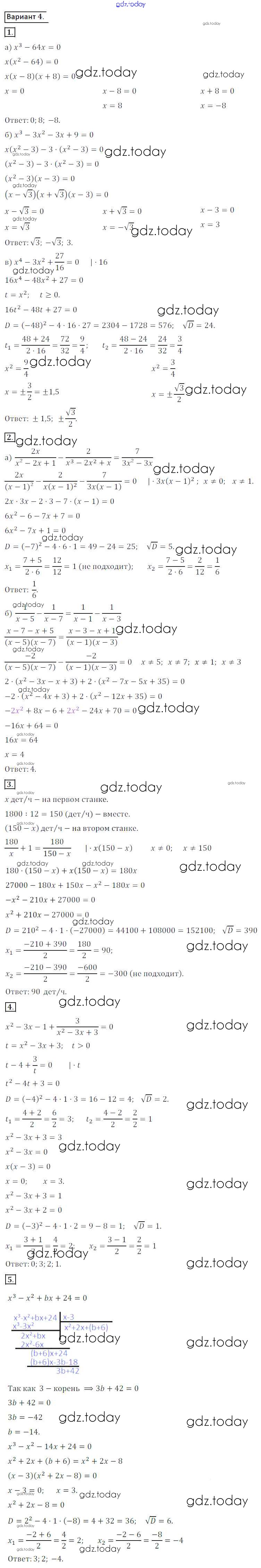 Ответы к КР №4 Решение к контрольным работам вариант 4 Дидактическим материалам по Алгебре для 8 класса Потапов, Шевкин Просвещение МГУ - школе 2017