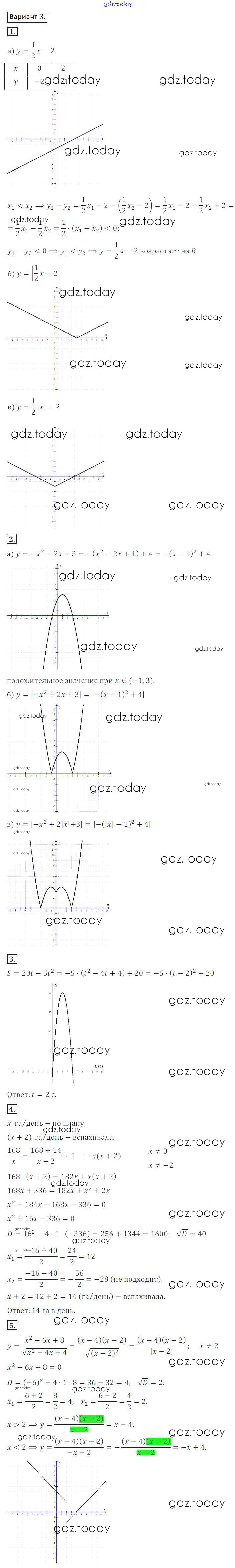Ответы к КР №5 Решение к контрольным работам вариант 3 Дидактическим материалам по Алгебре для 8 класса Потапов, Шевкин Просвещение МГУ - школе 2017
