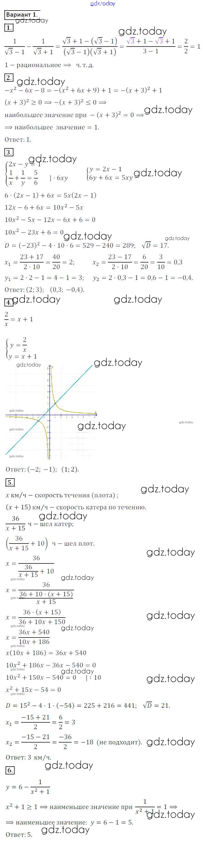 Ответы к КР №7 Решение к контрольным работам вариант 1 Дидактическим материалам по Алгебре для 8 класса Потапов, Шевкин Просвещение МГУ - школе 2017