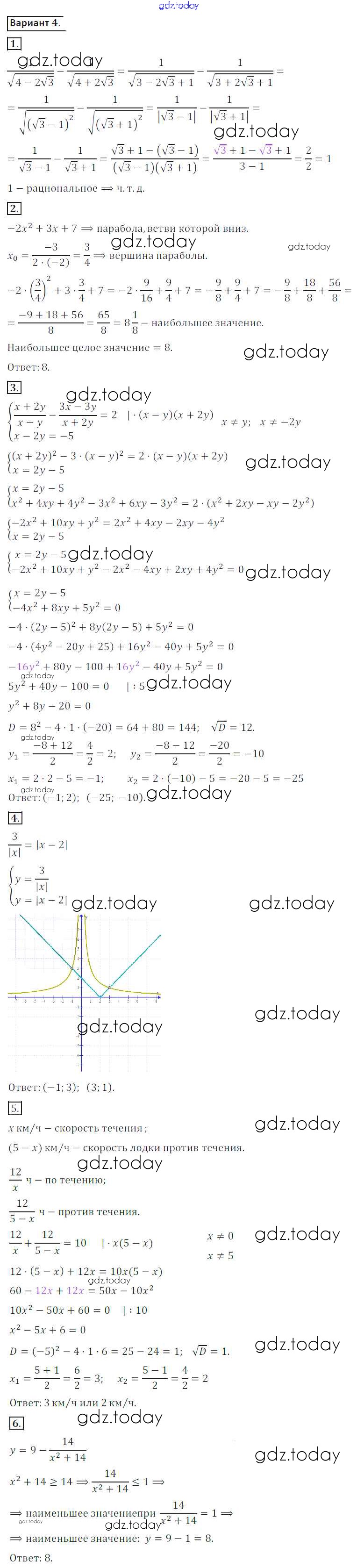 Ответы к КР №7 Решение к контрольным работам вариант 4 Дидактическим материалам по Алгебре для 8 класса Потапов, Шевкин Просвещение МГУ - школе 2017