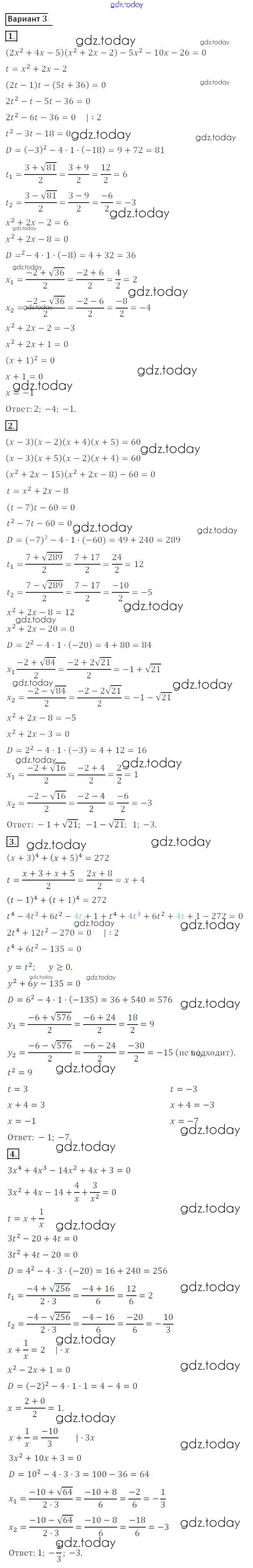 Ответы к СР №10. Замена неизвестного при решении рациональных уравнений Решение к самостоятельным работам вариант 3 Дидактическим материалам по Алгебре для 8 класса Потапов, Шевкин Просвещение МГУ - школе 2017