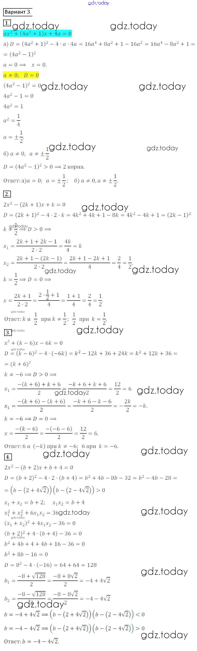 Ответы к СР №13. Квадратные уравнения с параметром Решение к самостоятельным работам вариант 3 Дидактическим материалам по Алгебре для 8 класса Потапов, Шевкин Просвещение МГУ - школе 2017