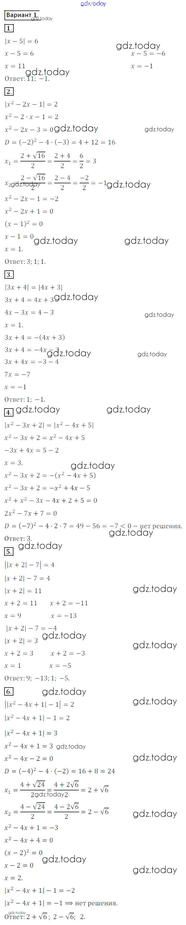 На страницах сайта gdz.today вы найдете учебный и вспомогательный материал, направленный на улучшения знаний школьной программы. ГДЗ - онлайн мир знаний СР №14. Уравнения, содержащие модули Решение к самостоятельным работам вариант 1 Дидактическим материалам по Алгебре для 8 класса Потапов, Шевкин Просвещение МГУ - школе 2017