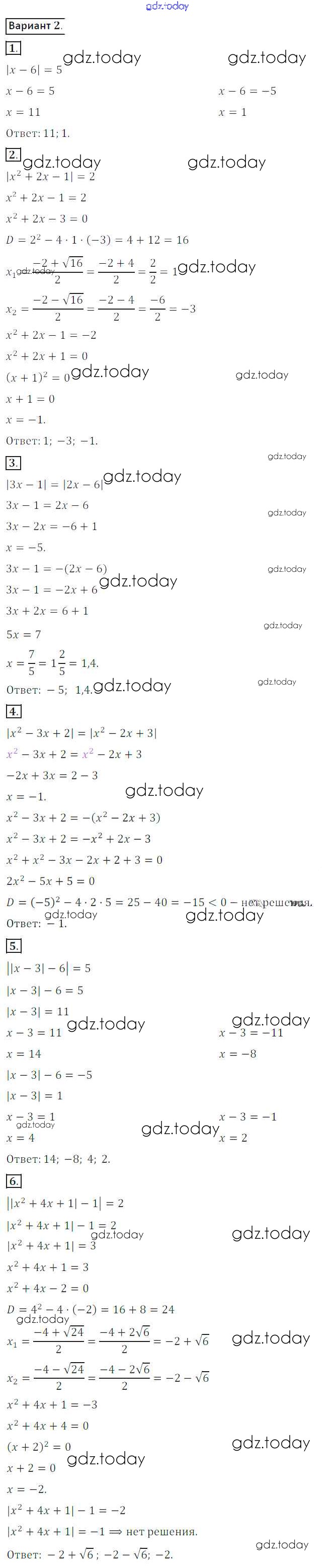 Ответы к СР №14. Уравнения, содержащие модули Решение к самостоятельным работам вариант 2 Дидактическим материалам по Алгебре для 8 класса Потапов, Шевкин Просвещение МГУ - школе 2017