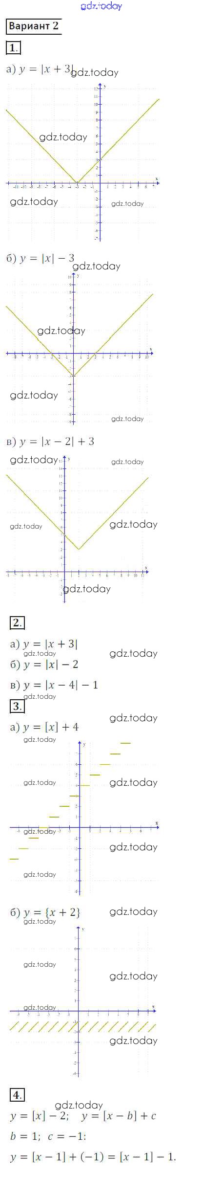 На страницах сайта gdz.today вы найдете учебный и вспомогательный материал, направленный на улучшения знаний школьной программы. ГДЗ - онлайн мир знаний СР №16. Функции y = x, y = [x], y = {x} Решение к самостоятельным работам вариант 2 Дидактическим материалам по Алгебре для 8 класса Потапов, Шевкин Просвещение МГУ - школе 2017