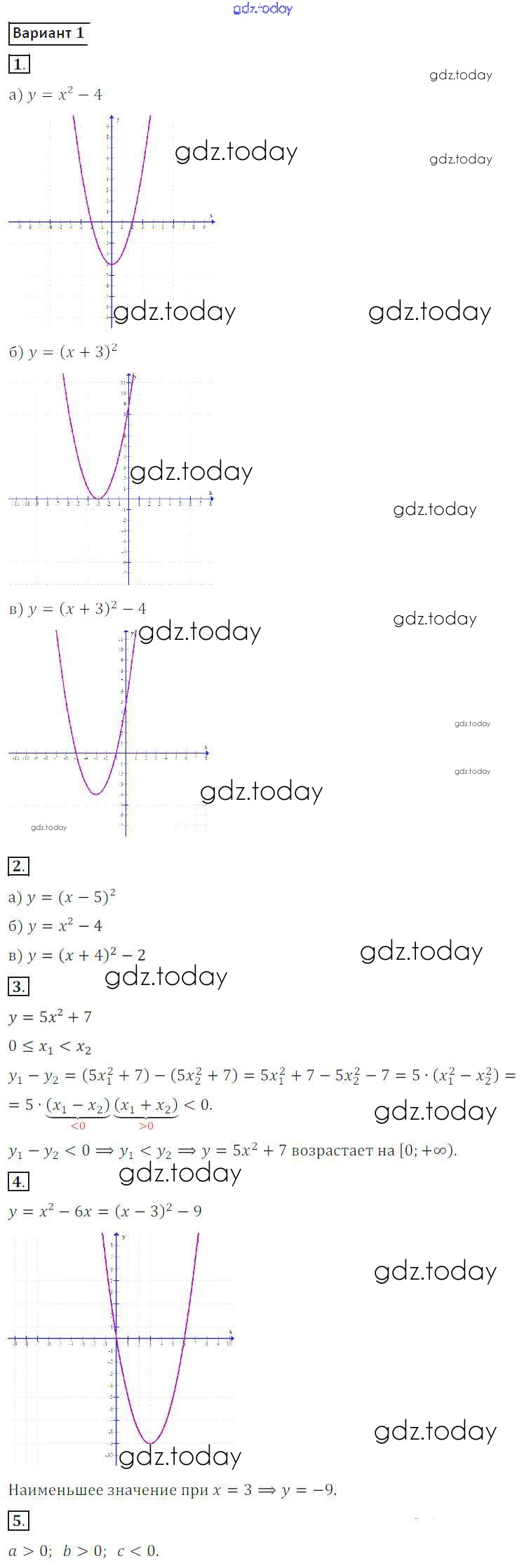 На страницах сайта gdz.today вы найдете учебный и вспомогательный материал, направленный на улучшения знаний школьной программы. ГДЗ - онлайн мир знаний СР №17. Квадратичная функция Решение к самостоятельным работам вариант 1 Дидактическим материалам по Алгебре для 8 класса Потапов, Шевкин Просвещение МГУ - школе 2017
