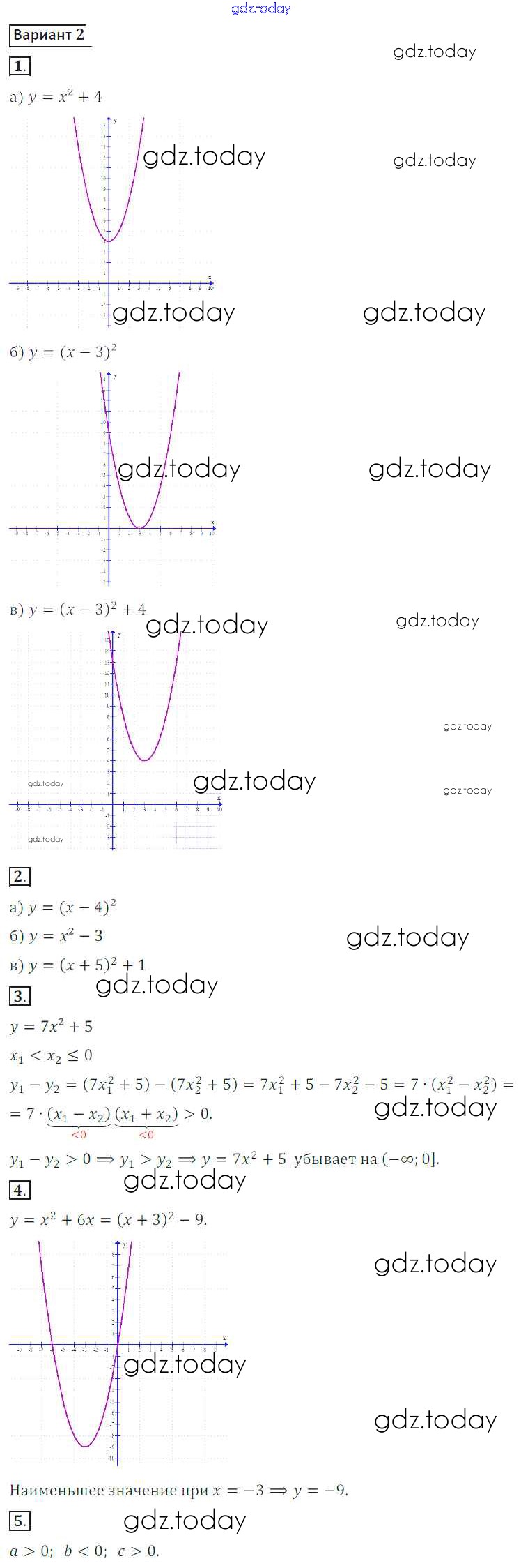 На страницах сайта gdz.today вы найдете учебный и вспомогательный материал, направленный на улучшения знаний школьной программы. ГДЗ - онлайн мир знаний СР №17. Квадратичная функция Решение к самостоятельным работам вариант 2 Дидактическим материалам по Алгебре для 8 класса Потапов, Шевкин Просвещение МГУ - школе 2017