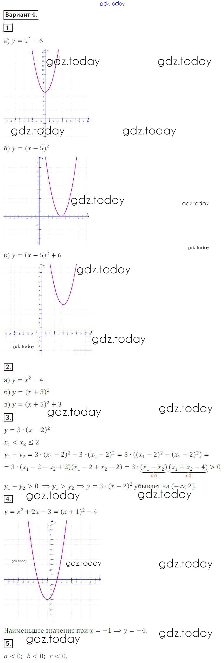 На страницах сайта gdz.today вы найдете учебный и вспомогательный материал, направленный на улучшения знаний школьной программы. ГДЗ - онлайн мир знаний СР №17. Квадратичная функция Решение к самостоятельным работам вариант 4 Дидактическим материалам по Алгебре для 8 класса Потапов, Шевкин Просвещение МГУ - школе 2017