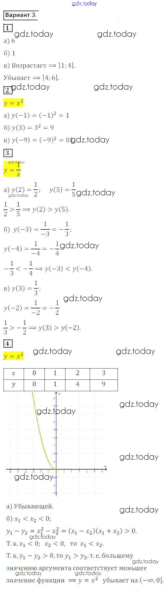 Ответы к СР №2. Функция. График функции Решение к самостоятельным работам вариант 3 Дидактическим материалам по Алгебре для 8 класса Потапов, Шевкин Просвещение МГУ - школе 2017
