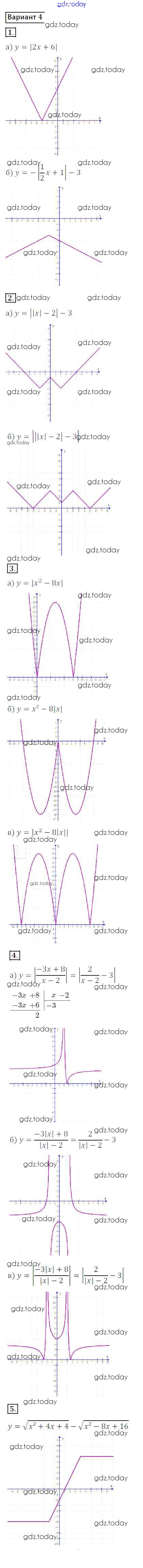 Ответы к СР №20. Графики функций, содержащих модули Решение к самостоятельным работам вариант 4 Дидактическим материалам по Алгебре для 8 класса Потапов, Шевкин Просвещение МГУ - школе 2017